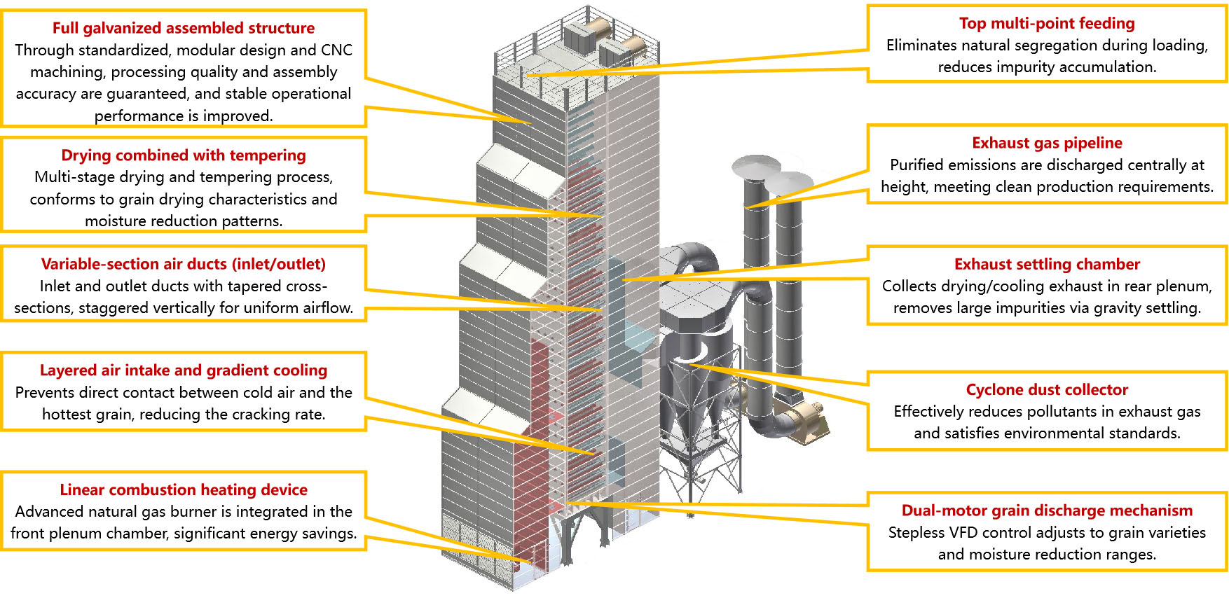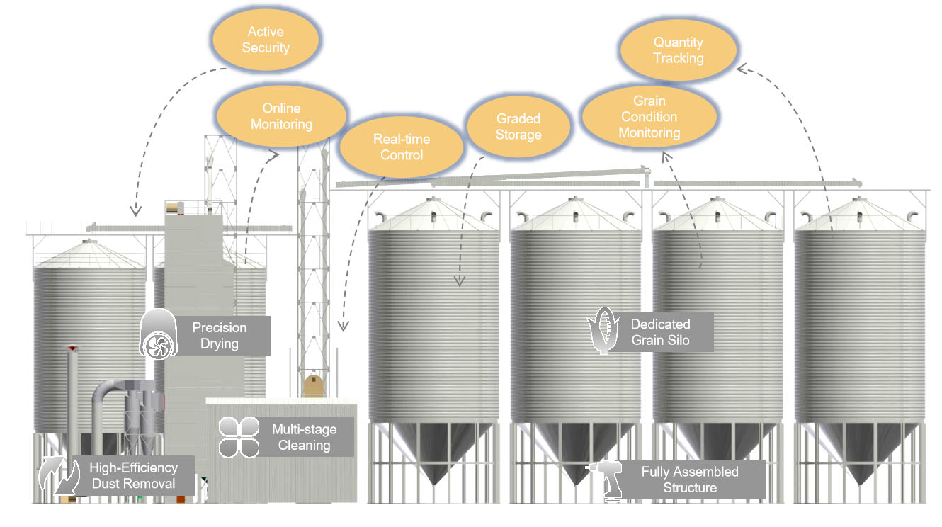 Tarla hasat makinesinden temizlik ve taşımaya, çelik öncesi ve sonrası silolardan toz kontrolü ve otomasyona kadar ıslak tahılların düşük sıcaklıkta taze kurutulması için entegre çözümler sunuyoruz. Çeltik, mısır, buğday, soya fasulyesi, kolza vb. için uygun kurutucularımız.